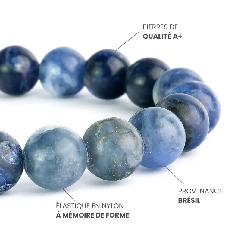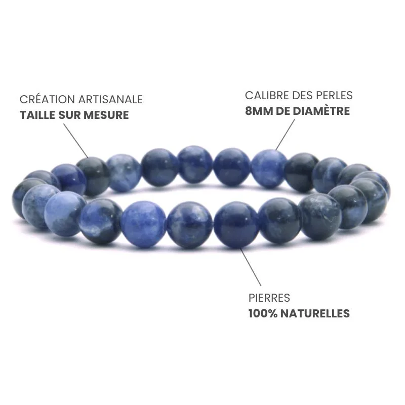 Découvrez notre magnifique bracelet en Sodalite A+, un bijou qui allie esthétique et nature grâce à ses pierres naturelles. Sa teinte bleu profond et ses nuances subtiles font de ce bracelet une pièce unique qui attirera tous les regards, tout en favorisant un équilibre spirituel grâce aux vertus de la Sodalite.